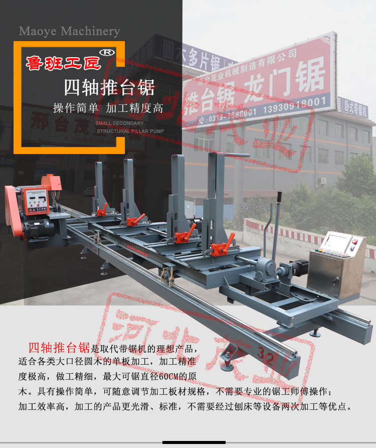 四軸推臺鋸產(chǎn)品是我公司在原有推臺鋸設(shè)備基礎(chǔ)上新設(shè)計開發(fā)的產(chǎn)品,具有高品質(zhì)、新外觀、多鋸片鋸切設(shè)計,穩(wěn)定性高,安全、高效、操作維護(hù)簡單等優(yōu)點(diǎn)。